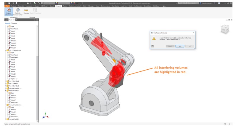 حجم هایی از تداخل قطعات بصورت مارک قرمز نشان داده می شود.