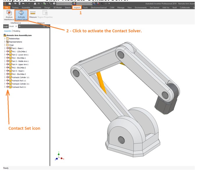 Inspect Tab -> Click ‘Activate Contact Solver’