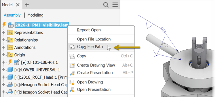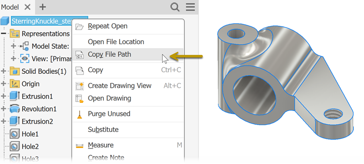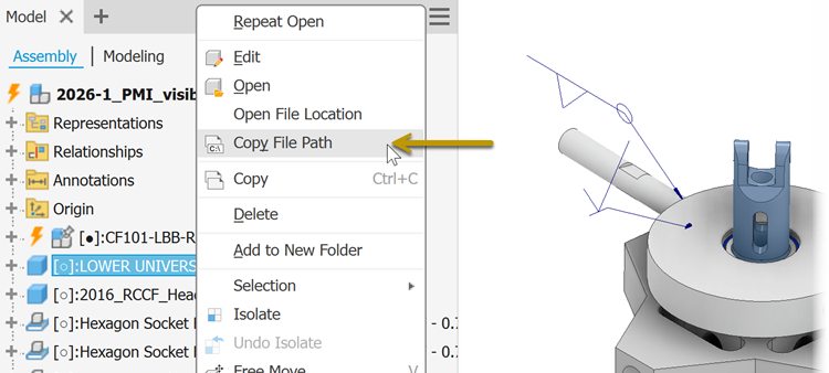 در منوی کلیک راست برای هر قطعه یا فایل مونتاژی اکنون شامل دستور کپی مسیر فایل است . این روش، روشی آسان برای استفاده از مسیر فایل یک قطعه برای دسترسی به سایر فایلهای موجود در همان مسیر فراهم میکند.
