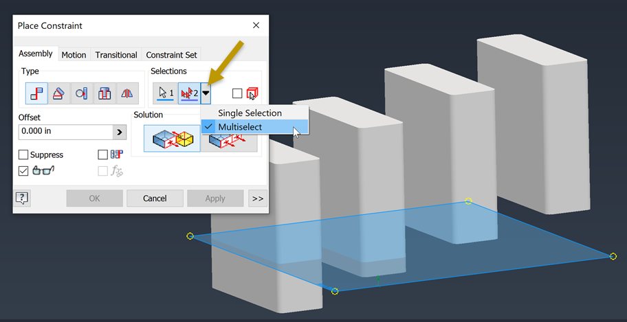 در اینونتور ۲۰۲۶ امکان انتخاب های چندگانه برای ابزار Mate ایجاد شده است.